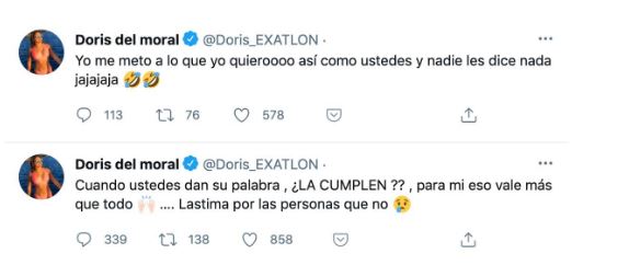Seguido de ello, Casandra comenzó a dejar algunos mensajes en Twitter, “no tengo por qué ofender a nadie, la verdad duele, ahora entiendo”, por lo que Doris apareció y salió en defensa de la basquetbolista diciendo: