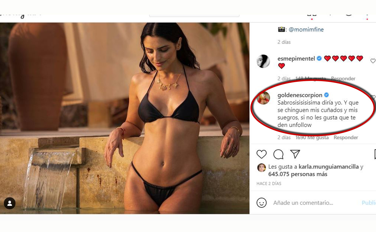 “Sabrosisisisisima diría yo. Y que se chinguen mis cuñados y mis suegros, si no les gusta que te den unfollow”, comentó el influencer.