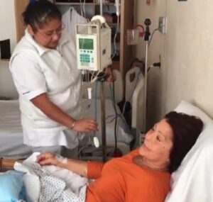 Tras varios días de la operación, Sandoval tuvo que visitar a Alejandra para una revisión post operatoria en la que le cambió el drenaje para que se recupere de la mejor forma.