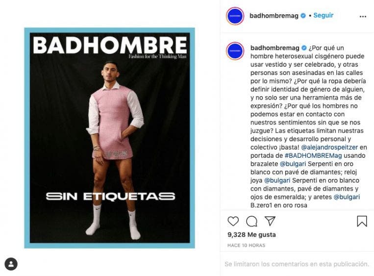 Ahora el actor mexicano, salió en la portada principal dentro de la revista mexicana Bad Hombre en su más reciente edición a la que llamaron «Sin etiquetas», en donde el guapo actor mexicano posó vestido de mujer en donde busca poder romper con los estereotipos.