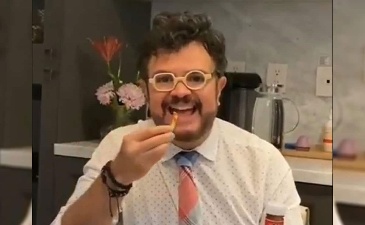 “Oye, ¿de casualidad sabes que yo compuse la canción de: ‘Quítale lo aburrido, ponle lo divertido, es puro tomate lo que a mi me late. Aprieta, exprime, apachurra. Es catsup de La Costeña. Es puro tomate”, cantó Syntek, mientras apareció comiendo papas con la famosa marca