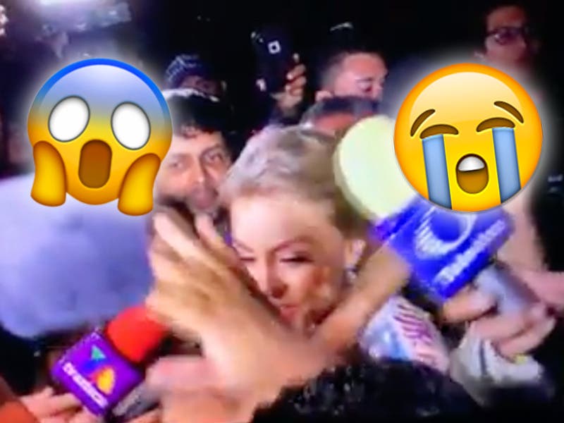 Angelique Boyer no salió lesionada ante la «lluvia» de latas de cerveza, pero el cantante Raymix no tuvo la misma suerte. Mientras la novia del también actor Sebastián Rulli era coronada, el intérprete recibió un fuerte impacto en el rostro.