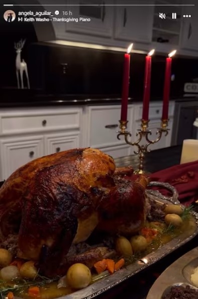 El cantante de regional mexicano compartió en sus redes un video agradeciendo su presente, mientras que Ángela presumió del menú que cenó junto a su familia en el Día de Acción de Gracias, una festividad en la que se da gracias por las bendiciones recibidas, especialmente por la familia y los amigos.