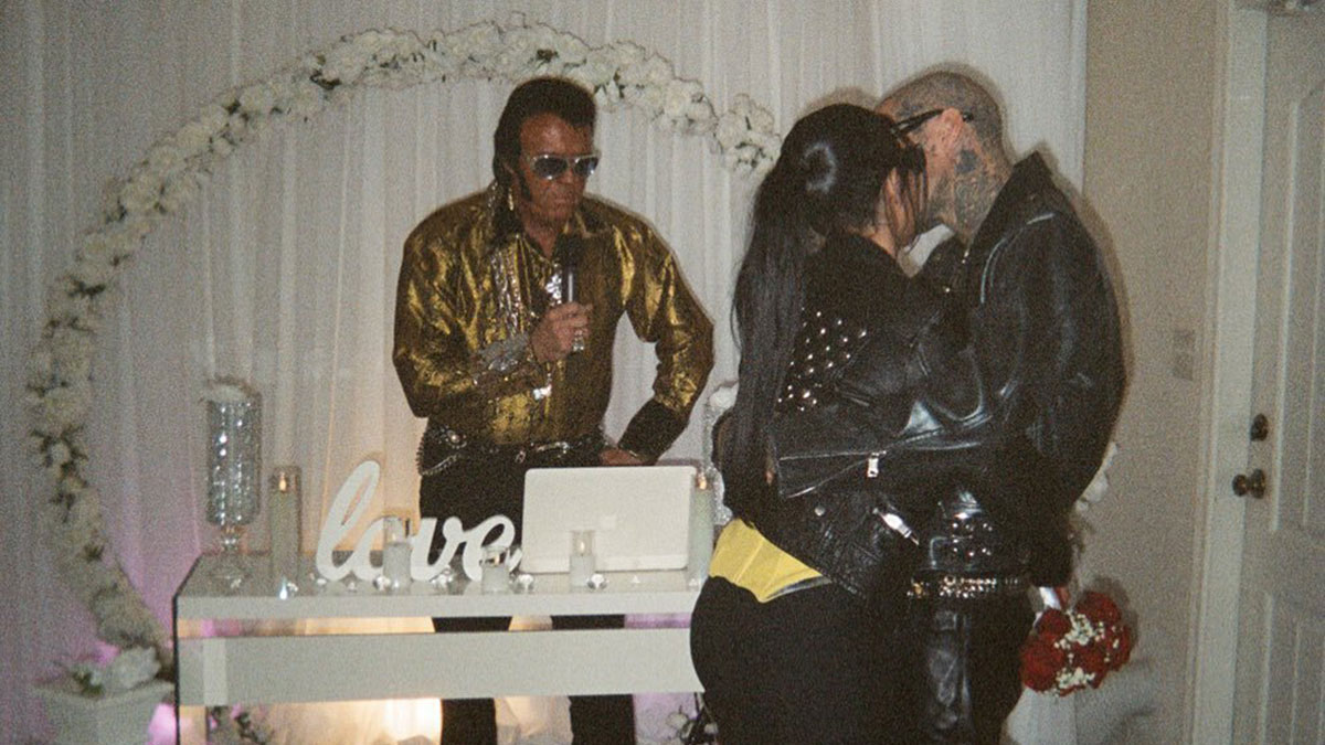 De acuerdo con varios medios de comunicación, Kourtney Kardashian y Travis Barker se casaron en la capilla alrededor de las 1:30 horas durante la madrugada del lunes, unas horas más tarde de que Barker se presentara en la ceremonia de los Premios Grammy en Las Vegas.