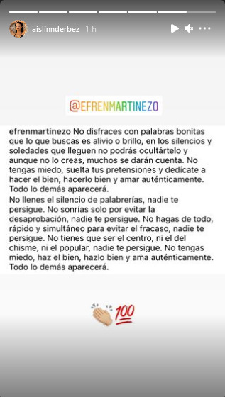 A través de historias de Instagram Aislinn Derbez había publicado algunos videos en donde se ve jugando con su hija Kailani, fruto de su relación con Ochmann, después de eso publicó una imágenes con la siguiente reflexión.