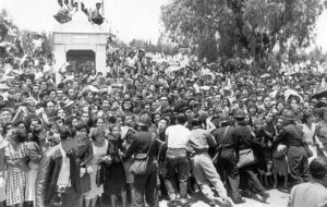 Otro de los momentos más emotivos de aquel 15 de abril son las imágenes en las que la policía tuvo que intervenir, pues cuando la familia se retiró con el féretro, miles de personas corrieron detrás.
