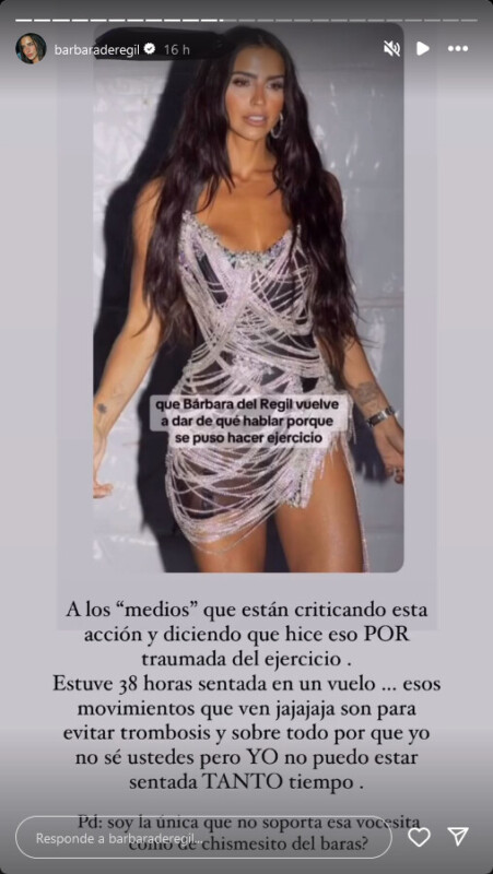 En los comentarios la llamaron ridícula y la señalaron de querer llamar la atención, sin embargo, Bárbara empleó sus historias de Instagram para aclarar el motivo por el que decidió hacer ejercicio en el viaje.