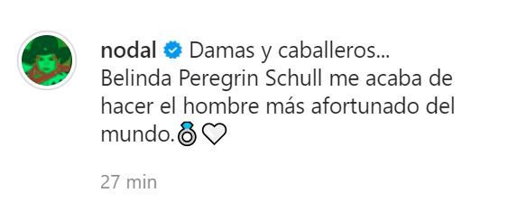 Luego de haber informado que Belinda y Christian Nodal posiblemente se habían comprometido en un restaurante de España, en menos de una hora el cantante lo confirmó en sus redes sociales.