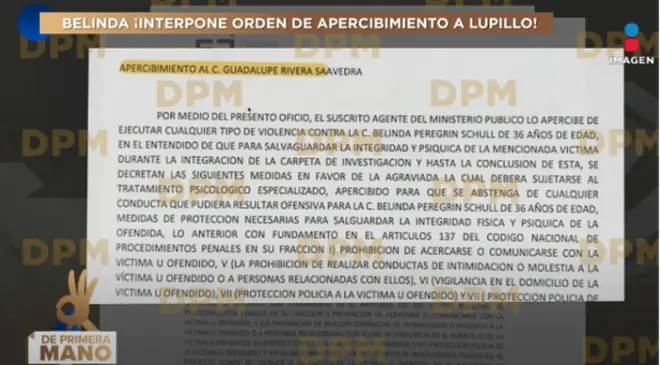 De acuerdo con información del programa “De primera mano”, la cantante solicitó una orden de apercibimiento contra Rivera. El documento emitido por el Ministerio Público prohíbe al intérprete de música regional mexicana ejercer cualquier acto de violencia o conducta ofensiva hacia Belinda, con el fin de proteger su integridad psicológica mientras avanza la carpeta de investigación.