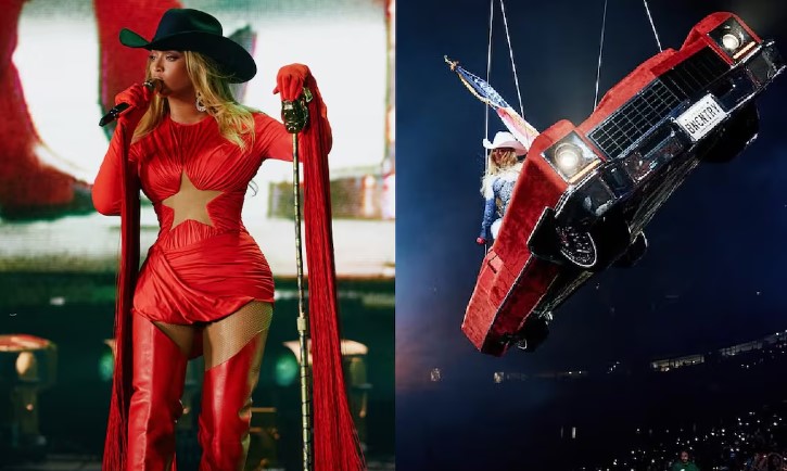 Beyoncé vivió minutos de tensión durante el concierto que ofreció este fin de semana en Houston, luego de que una falla técnica casi la hiciera caer desde varios metros de altura.
