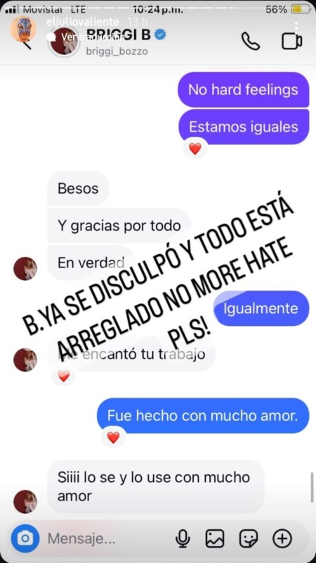 Cabe mencionar que el diseñador Julio publicó una captura en donde mostró que la integrante de La Casa de Los Famosos ya se había disculpado con él, asimismo, pidió a los usuarios de las redes sociales que no la critiquen.