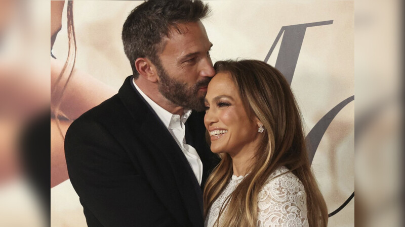 En diversas fotografías se observa a Ben Affleck vistiendo una chamarra guinda con borrega y un pantalón de mezclilla, sonriendo, mientras parece abrazar a su esposa Jennifer Lopez.