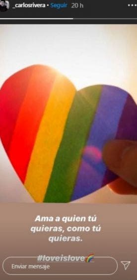 «Ama a quien tú quieras, como tú quieras. Love is love» escribió el intérprete a través de sus historias de Instagram con la imagen de un corazón con los colores del arcoiris, representativo de la comunidad LGBT+.
