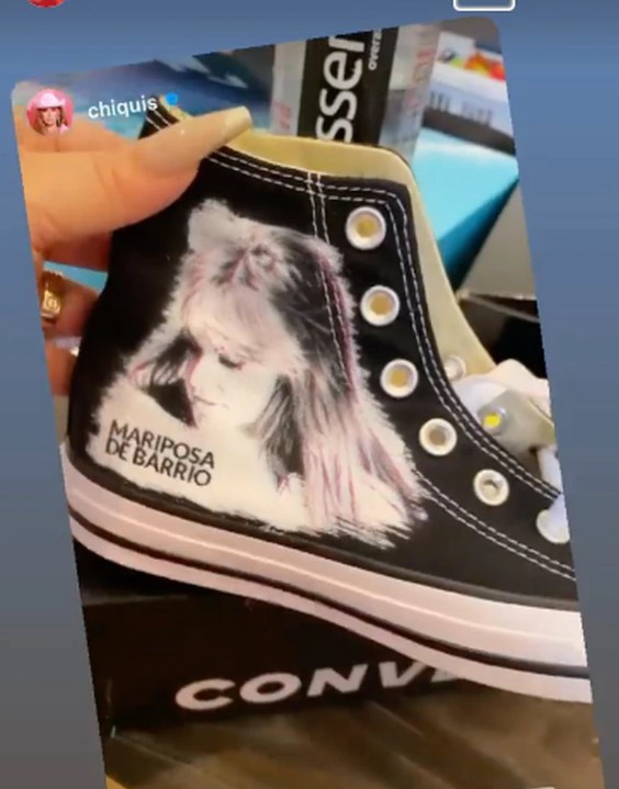 Fue a través de su Instagram, donde ‘La chiquis’ subió un video donde se observa el tributo a su madre. Así con la leyenda ‘Mariposa de Barrio’ puede observarse unos tradicionales tenis color negro con una imagen impresa de la difunta ‘Diva de la Banda’.