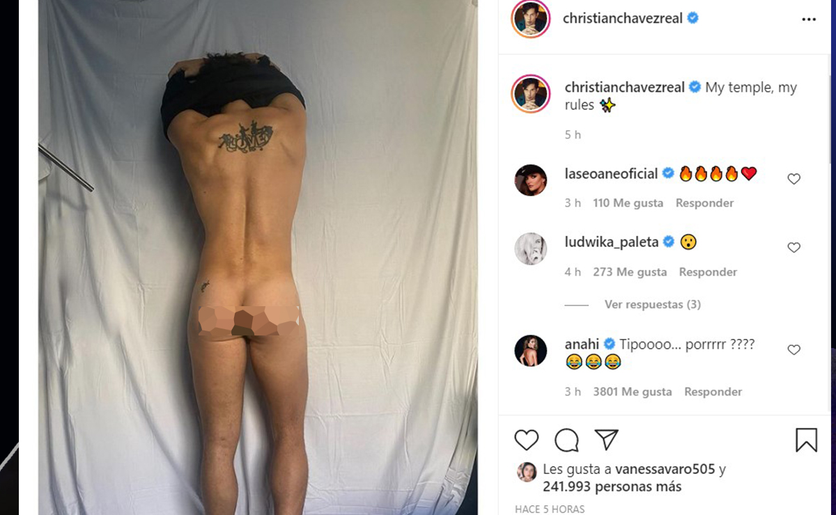 Junto a la controversial imagen, Christian Chávez escribió: “Mi cuerpo, mis reglas”. Con ello, el cantante dio a entender que, compartir una fotografía de él desnudo por la parte trasera de su cuerpo, lo hizo completamente bajo sus convicciones.