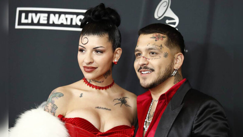 Christian Nodal y Cazzu posaron en una alfombra roja en el Michelob ULTRA Arena, donde varios famosos se dieron cita para celebrar a la Persona del Año de los Latin Grammy.