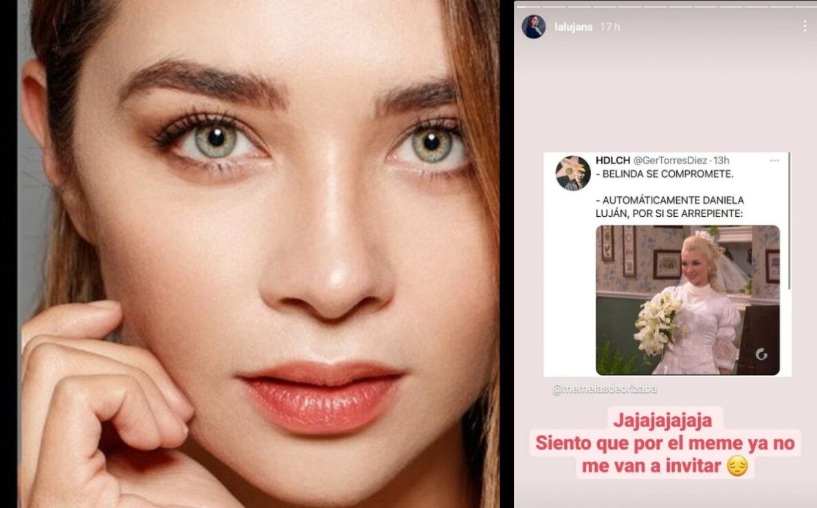 La actriz mexicana Daniela Luján, con un meme reaccionó al compromiso de Belinda y Christian Nodal, añadiendo un texto en el que indica “Siento que por el meme ya no me van a invitar”.