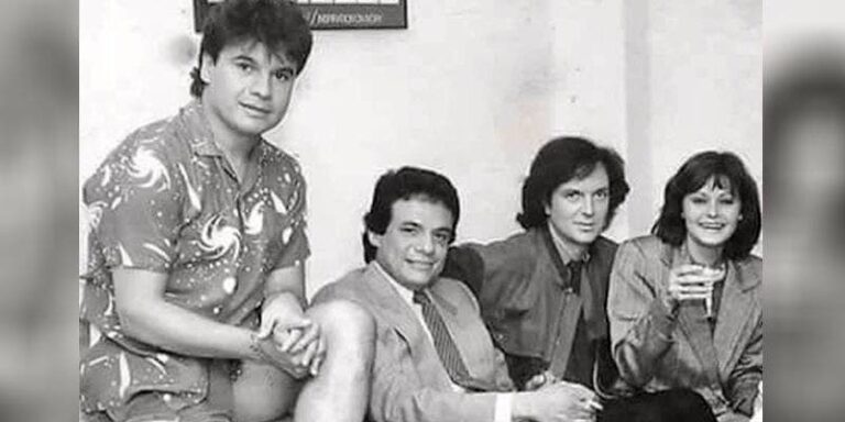 La fotografía habría sido tomada en 1984, aparecen en blanco y negro y sentados sobre un sofá: Camilo Sesto, Juan Gabriel, Rocío Durcal y José José, cuatro de las voces más talentosas de la música en español.