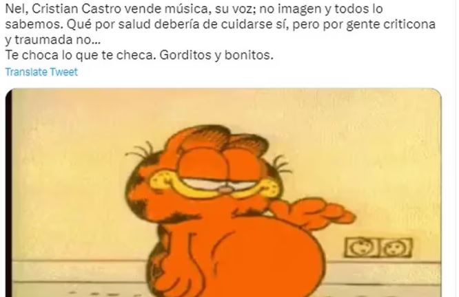 Mientras que otros usuarios los compararon con el gato Garfield luego de que terminara de comer su platillo favorito, por lo que se burlaron de su aspecto físico.