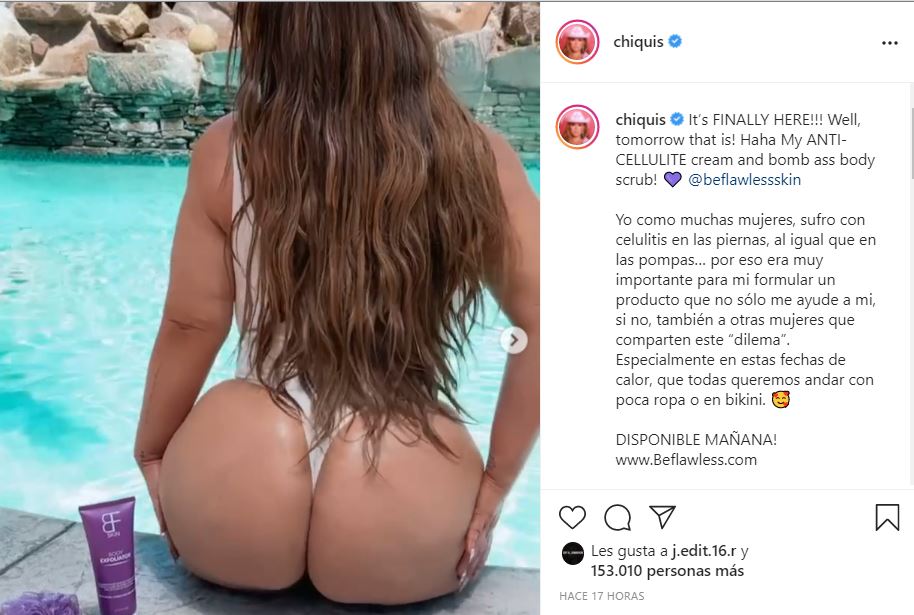 A través de su cuenta oficial de Instagram, Chiquis Rivera lanzó su más reciente emprendimiento, una crema anticelulitis; sin embargo, la cantante dividió opiniones al posar con su nuevo producto y mostrarse al natural.