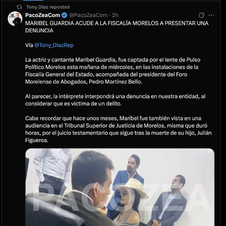 La información fue difundida en redes sociales por el periodista Paco Zea, quien citó datos proporcionados por Tony Díaz. En la publicación se detalló que la actriz acudió acompañada de Pedro Martínez Bello, presidente del Foro Morelense de Abogados.