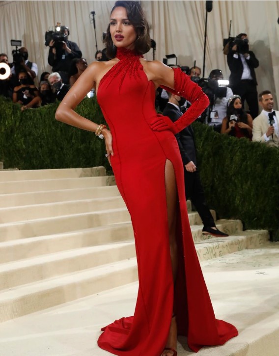 Eiza González portó un despampanante vestido en color rojo con una apertura en el muslo que recorría toda su pierna.