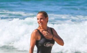 Dejó a la vista su figura atlética y torneada, fruto de largas jornadas de ejercicio y de una alimentación saludable. Soltó su cabellera rubia mojada y presumió su rostro sin maquillaje.