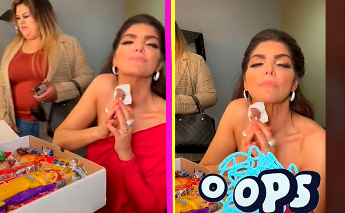 En el video se ve a Ana Bárbara agradeciendo a una fan por haberle regalado una enorme caja repleta de dulces. El clip, que dura muy pocos segundos, se observa que la cantante trata de sostener el vestido cuando éste está resbalando por sus hombros.