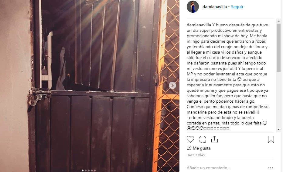 “Y bueno, después de que tuve un día súper productivo en trevistas y promocionandomi show de hoy.Me habla mi hijo para decirme que entraron a robar,yo temblando de coraje no dejé de llorar y al llegar a mi casa vi los daños, y auque sólo fue el cuarto de servicio lo afectado,me dañaron bastante pues ahí tengo todo mi vestuario, no es justo!!! ”