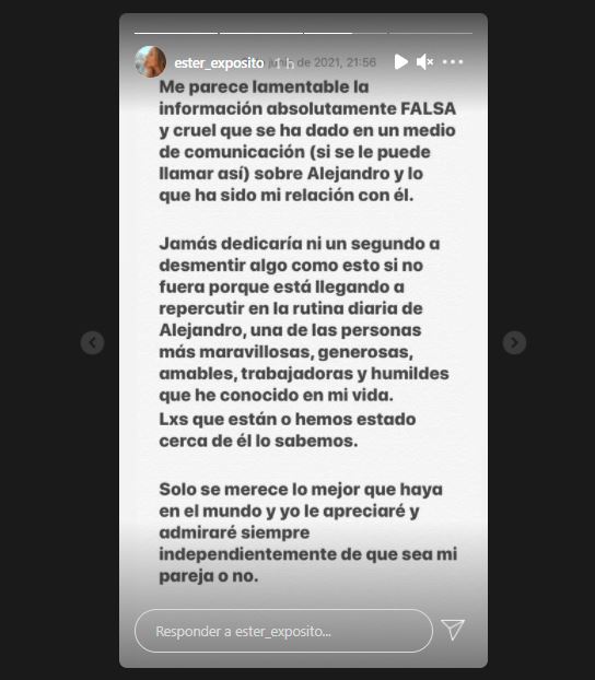 “Me parece lamentable la información absolutamente FALSA y cruel que se ha dado en un medio de comunicación (si se le puede llamar así) sobre Alejandro y lo que ha sido mi relación con él”.
