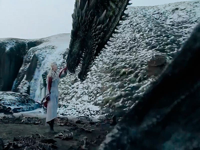Ante esta situación Daenerys sólo observa cómo cae el dragón muerto y con enojo se dirige hacia la flota de Euron Greyjoy, quien lo mató.