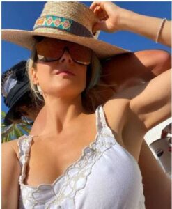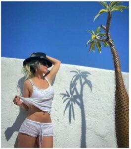 En la publicación se puede ver a la cantante con un outfit ligero que podría convertirse en una de las opciones ideales para vacacionar en la playa. Este atuendo en color blanco está conformado por un mini short y una blusa tipo tank top con detalles bordados en los tirantes y cuello.