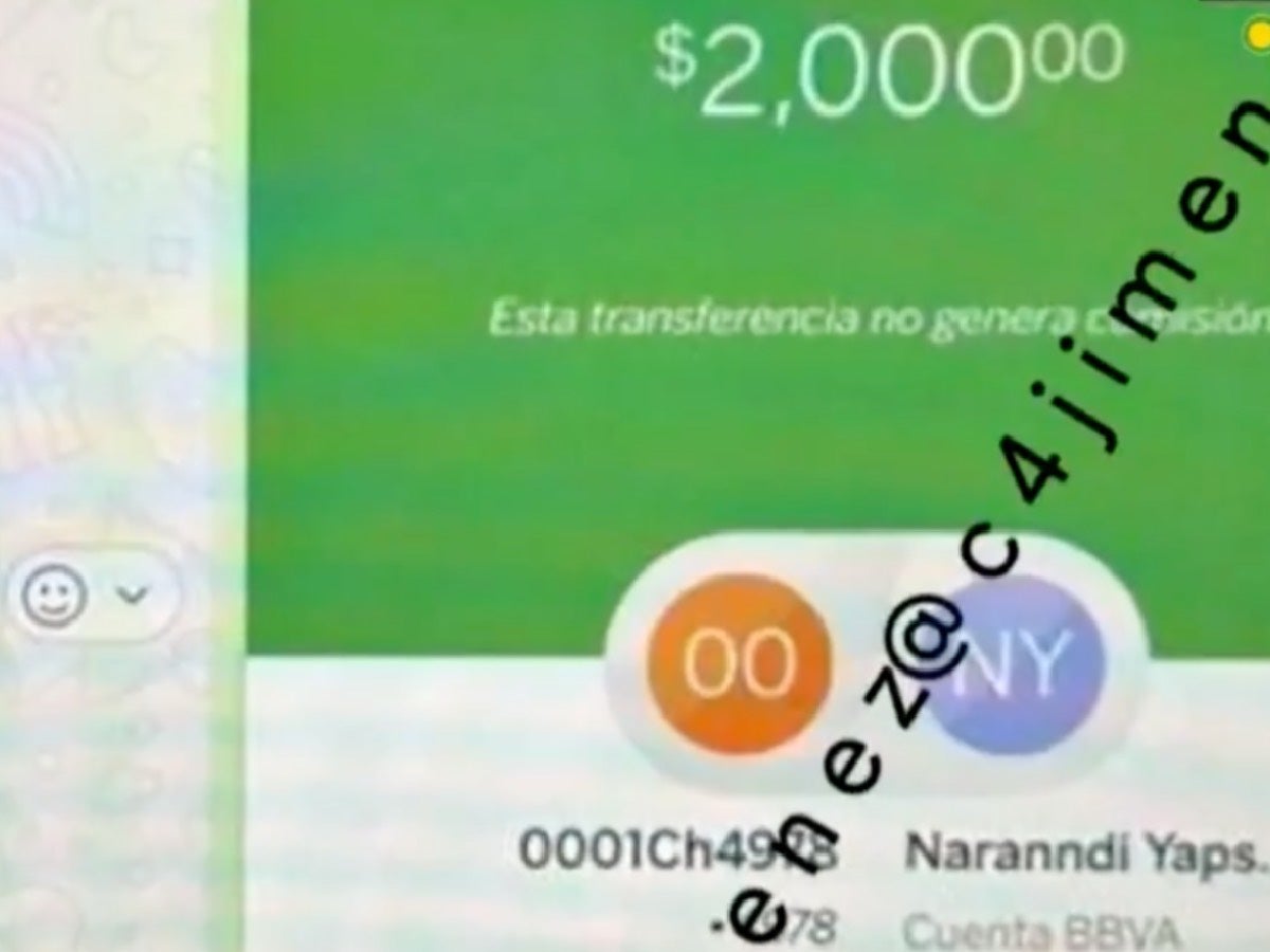 Entre las pruebas reveladas por Carlos Jiménez, se encuentra una captura de pantalla que muestra una presunta transferencia de 2 mil pesos realizada por Imelda a uno de sus proveedores de drogas.