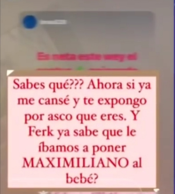 “¿Sabes qué? Ahora si ya me cansé, y te expongo por asco que eres. ¿Y Ferk ya sabe que le íbamos a poner MAXIMILIANO al bebé?”, escribió la hija de La Guzmán.