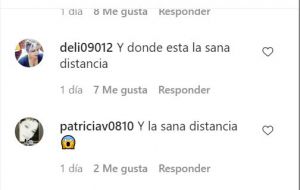 Con comentarios como “No bueno ustedes con su letanía de quédate en casa y qué ejemplo ponen. Irresponsables”, “¿por qué no les importa dar tan mal ejemplo como figuras públicas?”, la audiencia les reclamó que no respeten la sana distancia ni se queden en casa para evitar la propagación de contagios.