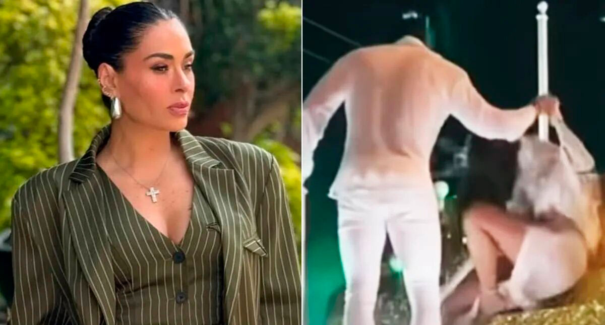 El incidente ocurrió cuando Montijo, vestida con un elegante atuendo blanco con pedrería, intentó bajar las escaleras con la ayuda de su novio, el modelo español Isaac Moreno. Un mal paso y su vestido provocaron que perdiera el equilibrio, cayendo sentada en los escalones.