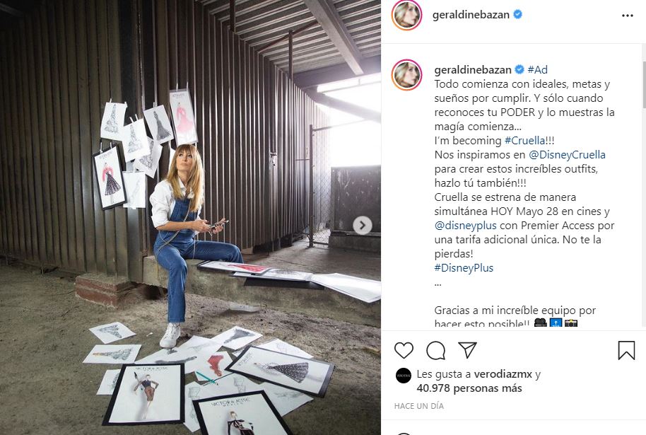 Como parte de la promoción de ‘Cruella’, filme que tuvo su estreno simultáneo en Disney+ y cines, Geraldine Bazán subió unas fotografías en donde se caracterizó de la icónica villana. Además, la actriz mexicana no sólo posó con estos vestuarios, sino que también los diseñó.