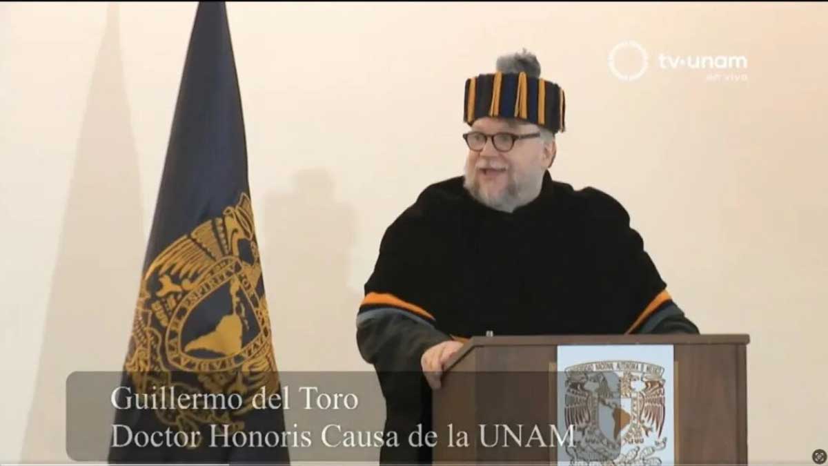 El cineasta Guillermo del Toro recibió el doctorado honoris causa de la Universidad Nacional de la Autónoma de México (UNAM) por reconocimiento a su trayectoria, aunque también aceptó en su discurso que el recibirlo es un compromiso con el futuro.