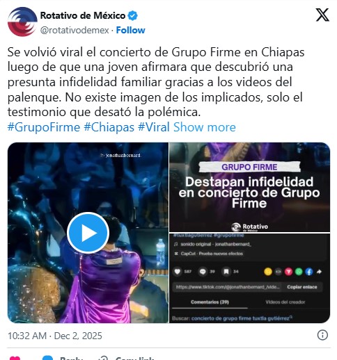 Grupo Firme ayudó a destapar una infidelidad luego de que un fan identificara a su pareja en un concierto de la banda en Chiapas con su cuñado.