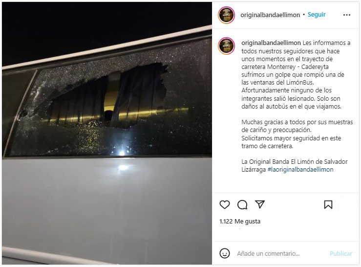 Mientras se trasladaba a Estados Unidos, La Original Banda El Limón de Salvador Lizárraga sufrió un intento de asalto en su autobús en la carretera Monterrey-Cadereyta.