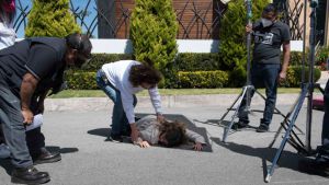 Los actores llegaron a tiempo a su llamado para iniciar con la transformación y es que tenían que checar con secuencia los detalles de su vestuario, además de maquillaje y peinado para simular un accidente real, así como lo viste en televisión.