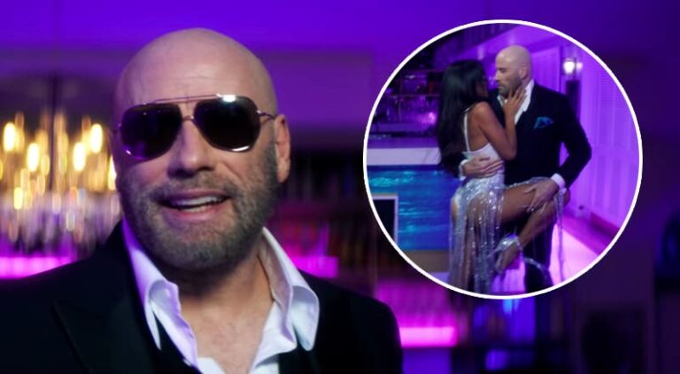 La convicción con la que logra cada uno de sus pasos recuerda a los tiempos en que más joven puso a bailar a la actriz Uma Thurman en ‘Pulp Fiction’ o a su icónica colega, Olivia Newton en ‘Grease’. A su danza se une otra bailarina complementando el trío, al que hace alusión la letra de la canción.