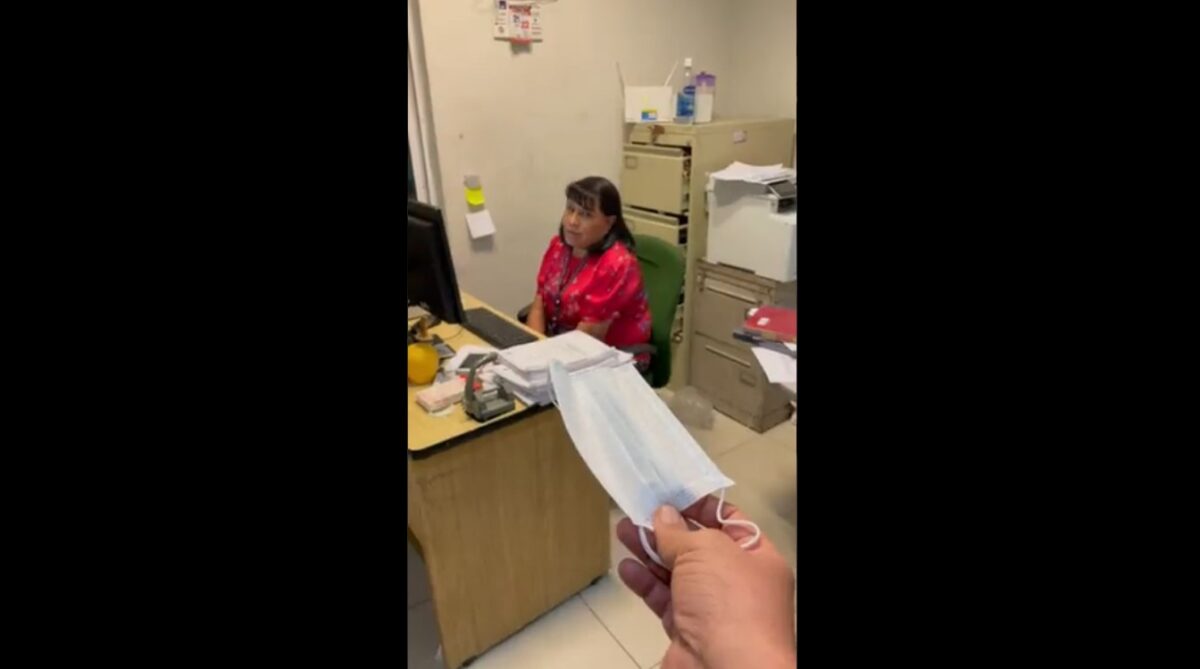 Sin embargo, Jorge le pide que se ponga un cubrebocas, tras lo cual la funcionaria replica que no tiene una mascarilla.