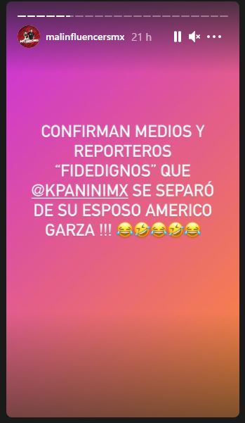 “Periodistas” de programas de chismes confirman la separación de Karla Panini y Américo Garza”, la cual actualmente cuenta con 2 mil 399 likes y más de 58 comentarios.