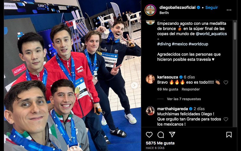 “Quien me pagó las competencias de Berlín fue Martha Higareda. Entonces, estoy muy agradecido con esas personas que me caen del cielo justamente antes de las competencias. Si no, no hubiéramos asistido Randal y yo a Berlín, porque también le pagó el viaje a Randal, el cónsul de Bulgaria hacia Berlín y la inscripción de Randal se la pagó Karla Souza”, contó Diego Balleza a Claro Sports.