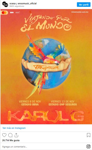 Karol G anunció su gira mundial “Viajando por el Mundo: Tropitour” durante su presentación en el festival Coachella 2026. Tras el anuncio, la cantante reveló oficialmente las fechas para sus presentaciones en México, así como los detalles de la preventa de boletos.
