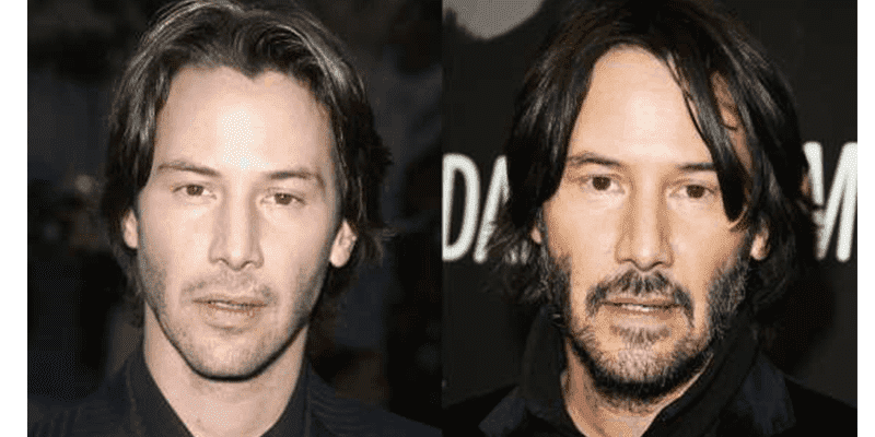 Las primeras fotografías comparan al Keanu de 2008 y al de 1999, cuando era la época de “Los reyes de la calle” y “Matrix” respectivmente. ¿Encuentras alguna diferencia?