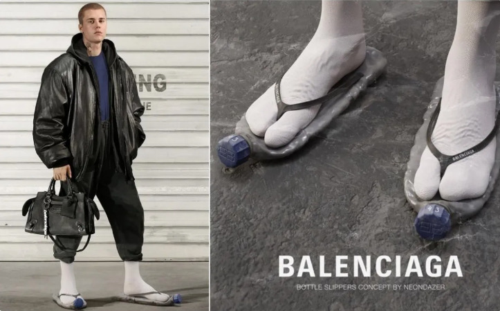 La marca de moda Balenciaga, se ha caracterizado siempre por modas que rayan en lo absurdo, pero esta vez se saltaron todas las normas y sacaron al mercado unas sandalias de botellas aplastadas y escogieron a Justin Bieber para nodelarlas.