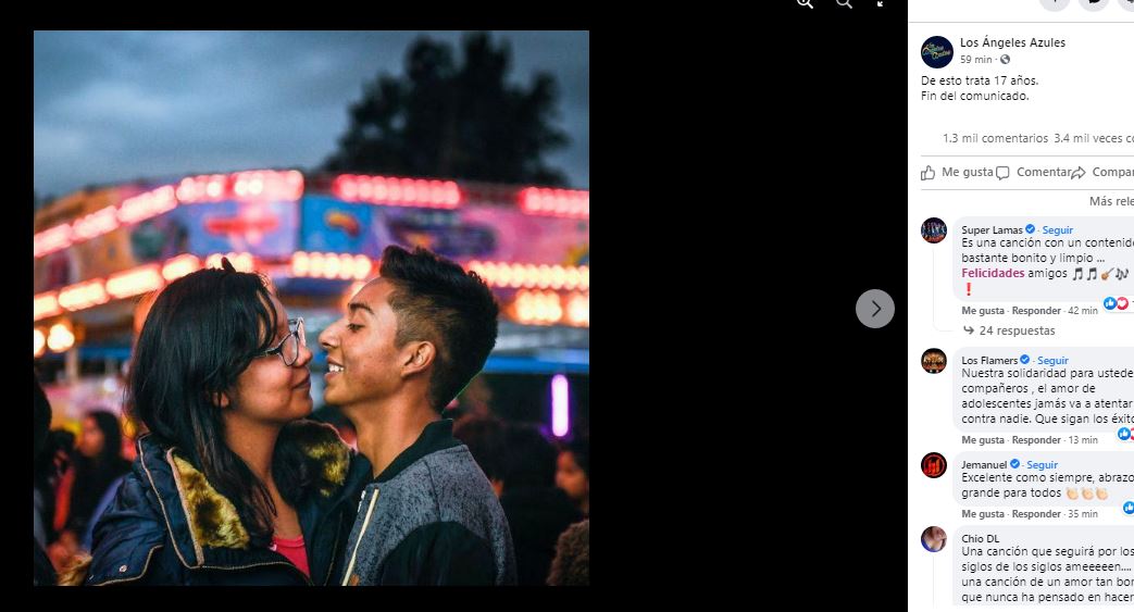 “Si usted hace una fiesta tenga la decencia de nunca poner la canción ’17 Años’ de Los ángeles azules. Su letra habla de cómo un hombre viejo se aprovecha de una niña. ¿Por qué la gente pone esta canción con un contenido evidentemente condenable?”, escribió el usuario.