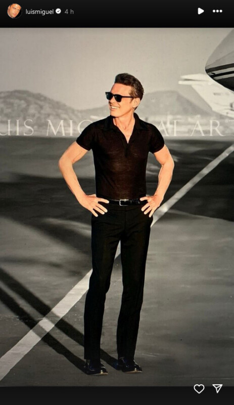 A través de las historias de Instagram, el intérprete de “La Incondicional” presumió su outfit de playera, pantalón de vestir, zapatos y cinturón negro, acompañado con unas gafas oscuras, que lo hacen ver radiante.